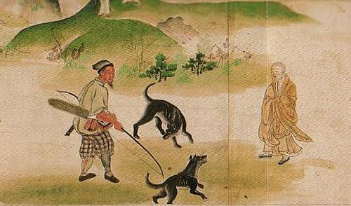空海が高野山に真言密教の聖地を開くとき、猟師に姿を変えて、大小2匹の黒い犬と共に現れ、道案内したらしい?